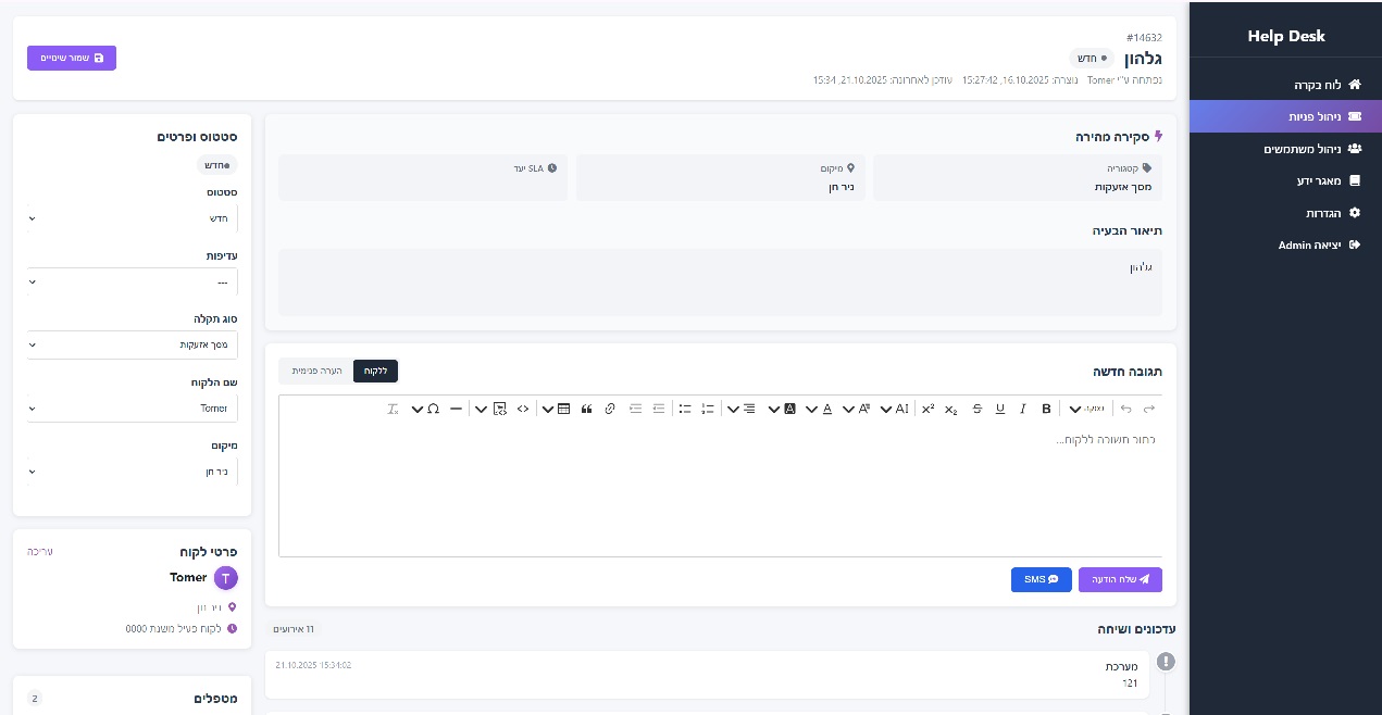 "אחרי הטמעת המערכת, הכל פשוט זורם חלק יותר. פניות מטופלות מהר, הלקוחות מרוצים, ואנחנו רואים תמונה ברורה של כל צרכי התמיכה."